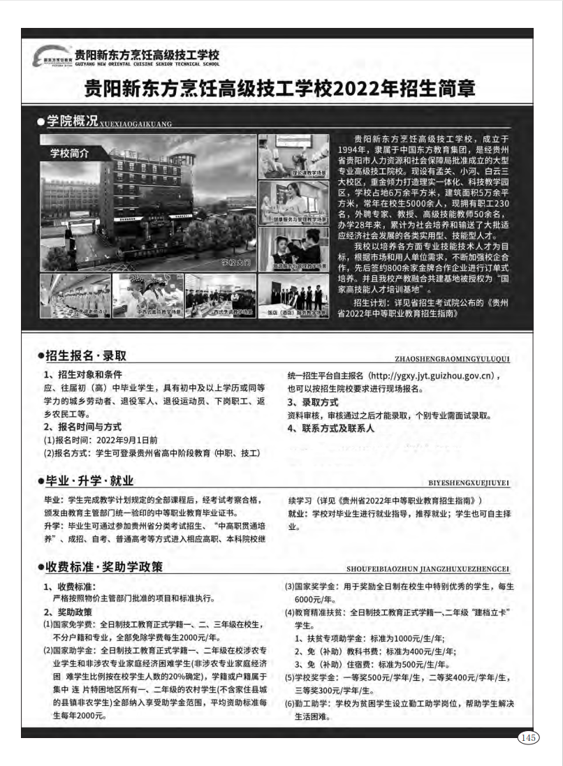 2022年贵阳新东方烹饪高级技工学校招生简章